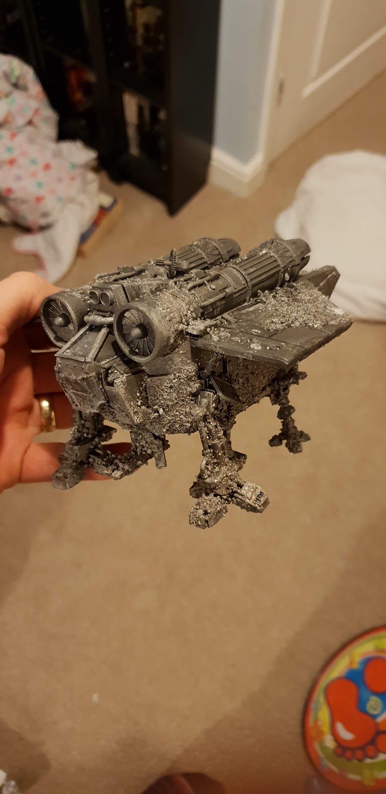 So, I wanted this guy to look as old, and battered as possible so I did the standard thing I do when doing a lot of weathering. Salt+hairspray.